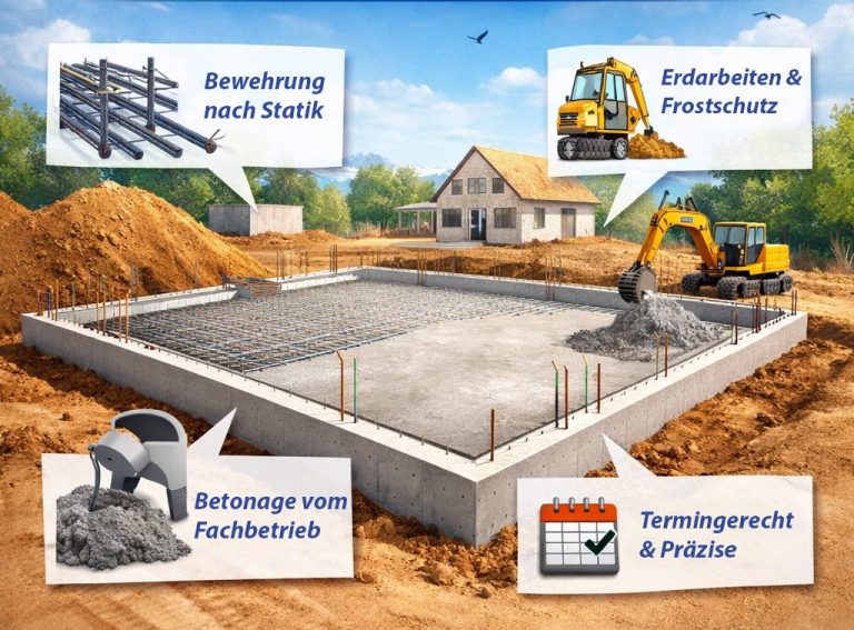 Deshalb sollte die Bodenplatte von einem erfahrenen Fachbetrieb geplant und umgesetzt werden – präzise nach Statik und mit hochwertiger Ausführung.